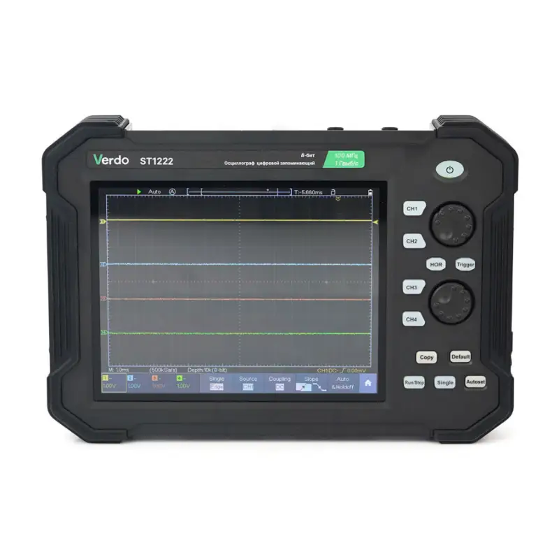 Осциллограф VERDO ST1222 представляет собой современный планшетный прибор, сочетающий высокую производительность с удобством использования. Благодаря компактному форм-фактору и 8-дюймовому дисплею он обеспечивает комфортную работу как в лабораторных условиях, так и в полевых. Прибор внесен в ГосРеестр СИ под номером 90665-23, что подтверждает его соответствие российским стандартам точности и надежности.